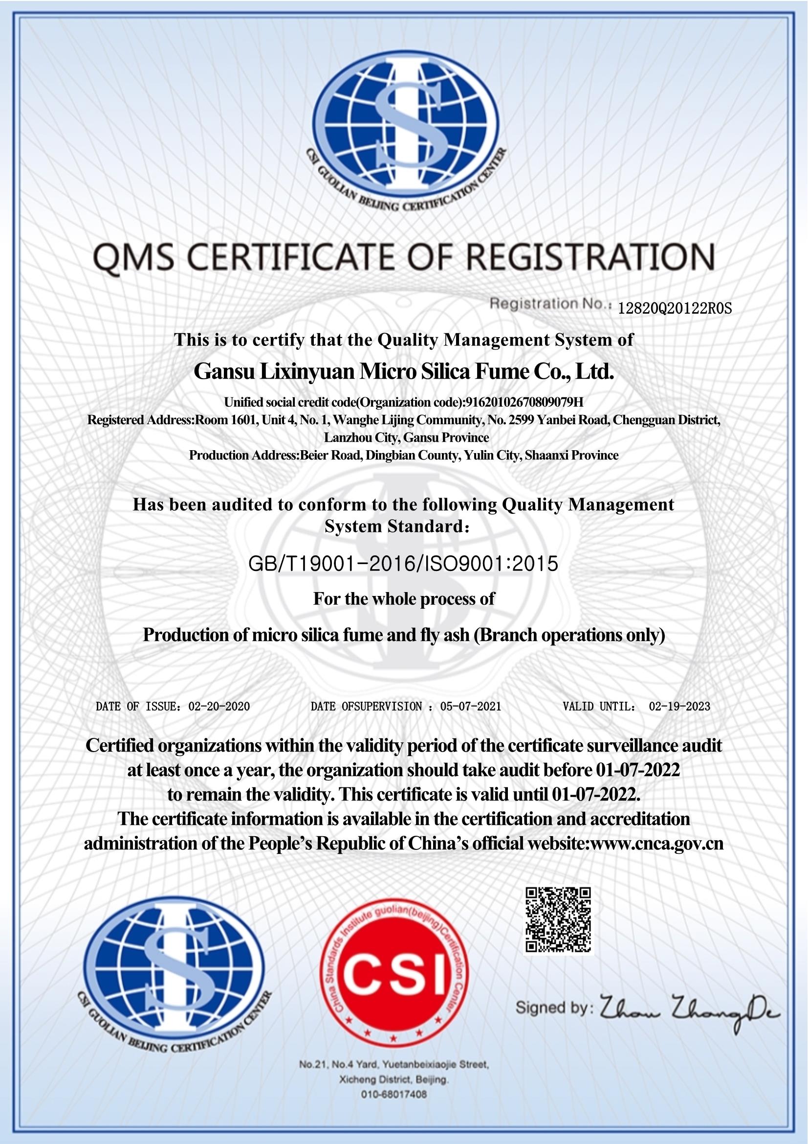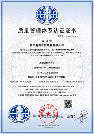 甘肅利鑫源微硅粉有限公司是專業(yè)微硅粉生產(chǎn)加工廠家,從事研發(fā)高品質(zhì)微硅粉,以出口為主的科技型企業(yè)。自2004年以來,公司專做微硅粉十七年。擁有先進(jìn)的生產(chǎn)和化驗(yàn)設(shè)備,并通 過了ISO9001:2015質(zhì)量管理體系認(rèn)證、ISO145001:2018環(huán)境管理體系認(rèn)證和ISO 45001: 2018職業(yè)健康管理體系認(rèn)證。